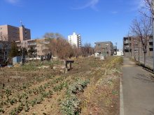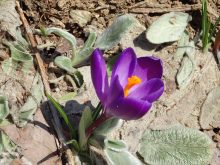花壇はまだ花が咲くには早かったですが、一部クロッカスが咲いていました。