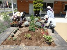 どんどん植えられていきます。この日は陽射しが強く、汗がたくさん出ます。時折水分補給と日陰での休憩をはさみながら、1時間ちょっとでほぼ植え終わりました。