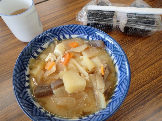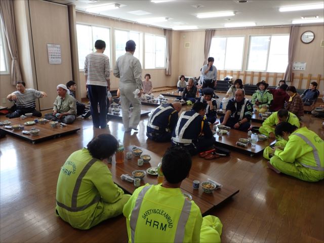 11時半には、全長3kmの花壇すべてが完了しました!作業のあとは手作りの豚汁とおにぎりを一緒にいただきました。とってもおいしい!!交流会では自己紹介などがあり、会場はあたたかい笑顔に包まれていました。