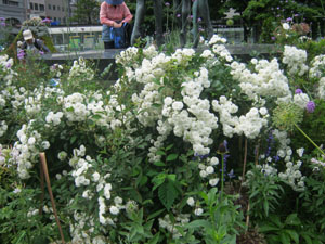 花壇では、団体名「あるば・ローズ」の由来でもある白バラが