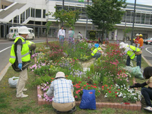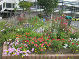 花壇は、JR手稲駅南口のロータリーにあります。