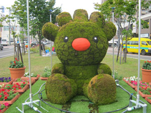 花壇の近くには、苔でできた「ていぬ」のトピアリーが!