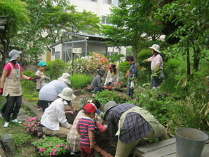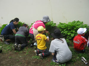 6月17日、札幌市立三角山小学校花壇ボランティアの活動を