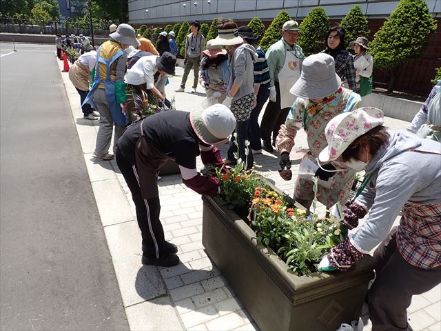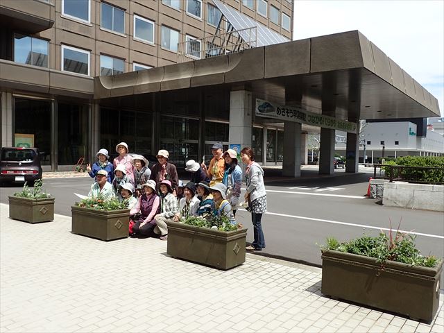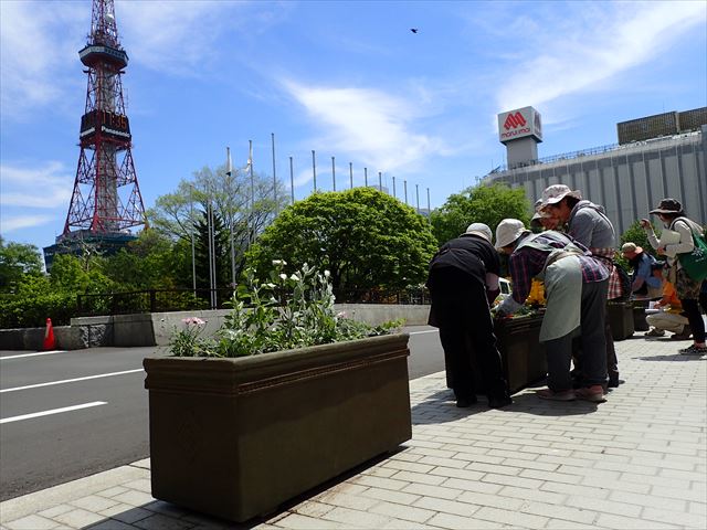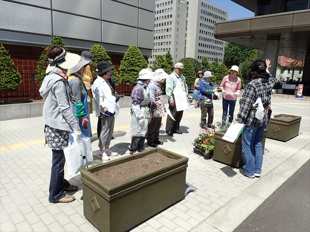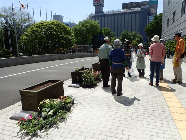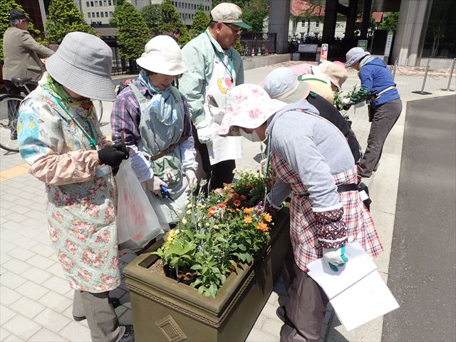 5月24日土曜日 ぽかぽか陽気の心地よいなか、札幌市役所前コンテナの苗植えを行いました。