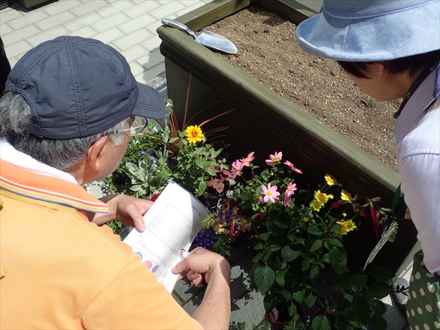 それぞれ班ごとに、前回デザインした図面をみながら苗を配置していきました。