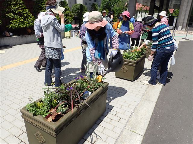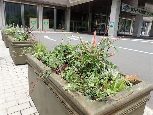 市役所前コンテナ・苗植えを行いました