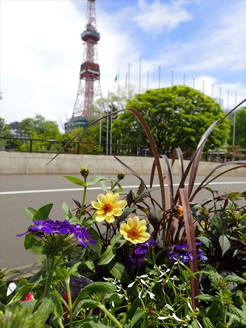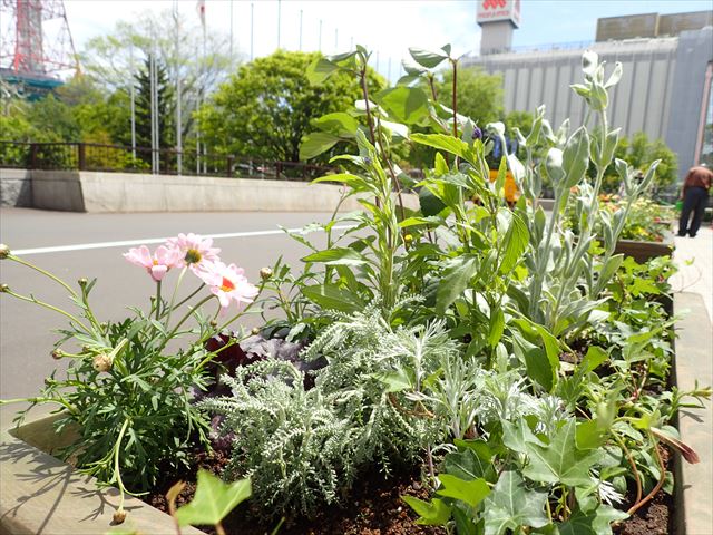 さっぽろタウンガーデナーによるコンテナのほか、花と緑のボランティア団体登録をしてくださっている「AMAサポーターズ倶楽部」、「あるば・ローズ」、「ガーデニングリラの会」、「豊平公園花とハーブの会」の4団体と、(地独)林業試験場の皆さんによるコンテナも市役所前に並んでいて、訪れる方々を明るくお出迎えしてくれます。