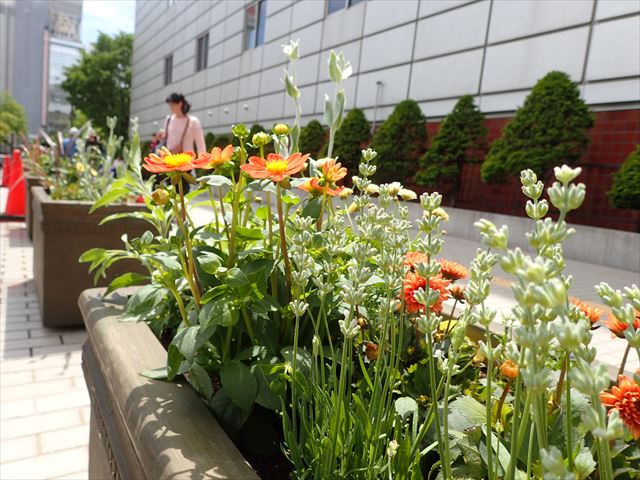 「市役所前おもてなし花壇」は、さっぽろタウンガーデナー含めボランティア等全6団体によってデザイン・植栽・管理されるコンテナ花壇です。