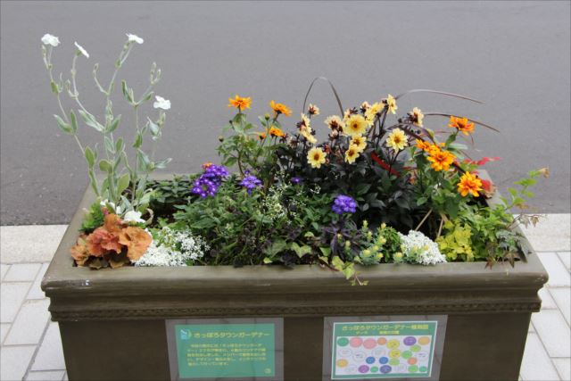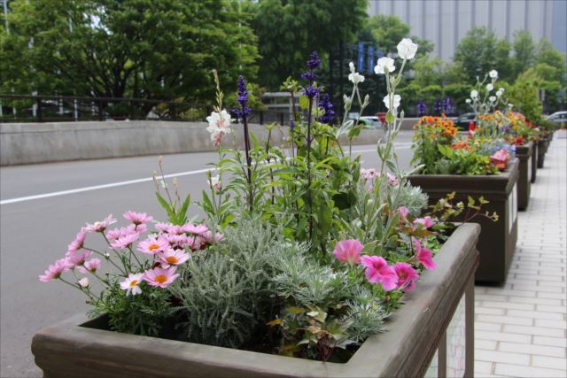 これらのさっぽろタウンガーデナーがデザイン&植栽した4基のコンテナの他、いろいろな団体のコンテナも設置されています。