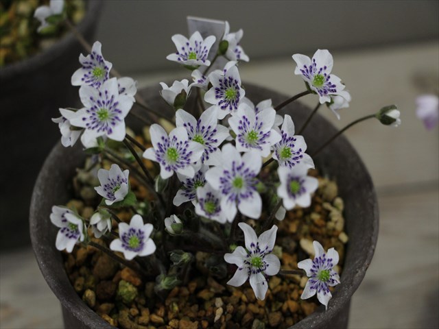 小さな花を見比べてみると、ひと鉢ずつ特長があり、思わず見入ってしまいました。花びらの色と、しべの色、咲き方、葉の色も様々で、マニアが多いのも納得です。
