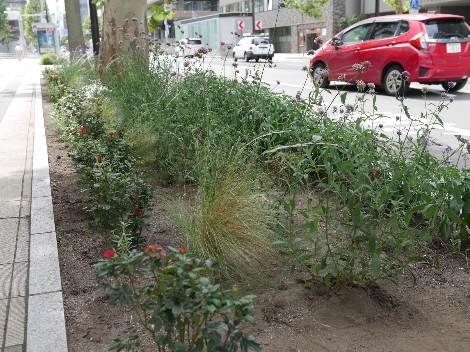 今回は7名のタウンガーデナーが参加してくださったおかげで、あっという間にキレイになり、そよそよそよぐうちにお隣と絡み合ってしまったサンジャクバーベナやいろいろな方向に伸びていたスティパも切り戻したので、だいぶスッキリしました。