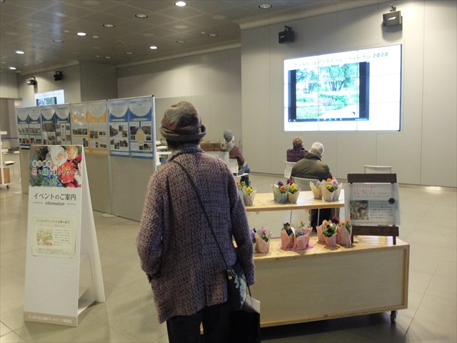会場では、大きなスクリーン2つで昨年11月に行われた「さっぽろ花と緑のまちづくりフォーラム2020」のYoutube動画と、花と緑のボランティア団体やさっぽろタウンガーデナーの活動紹介を行なうスライドショーを上映し、登録団体の活動を紹介するポスター展も行いました。