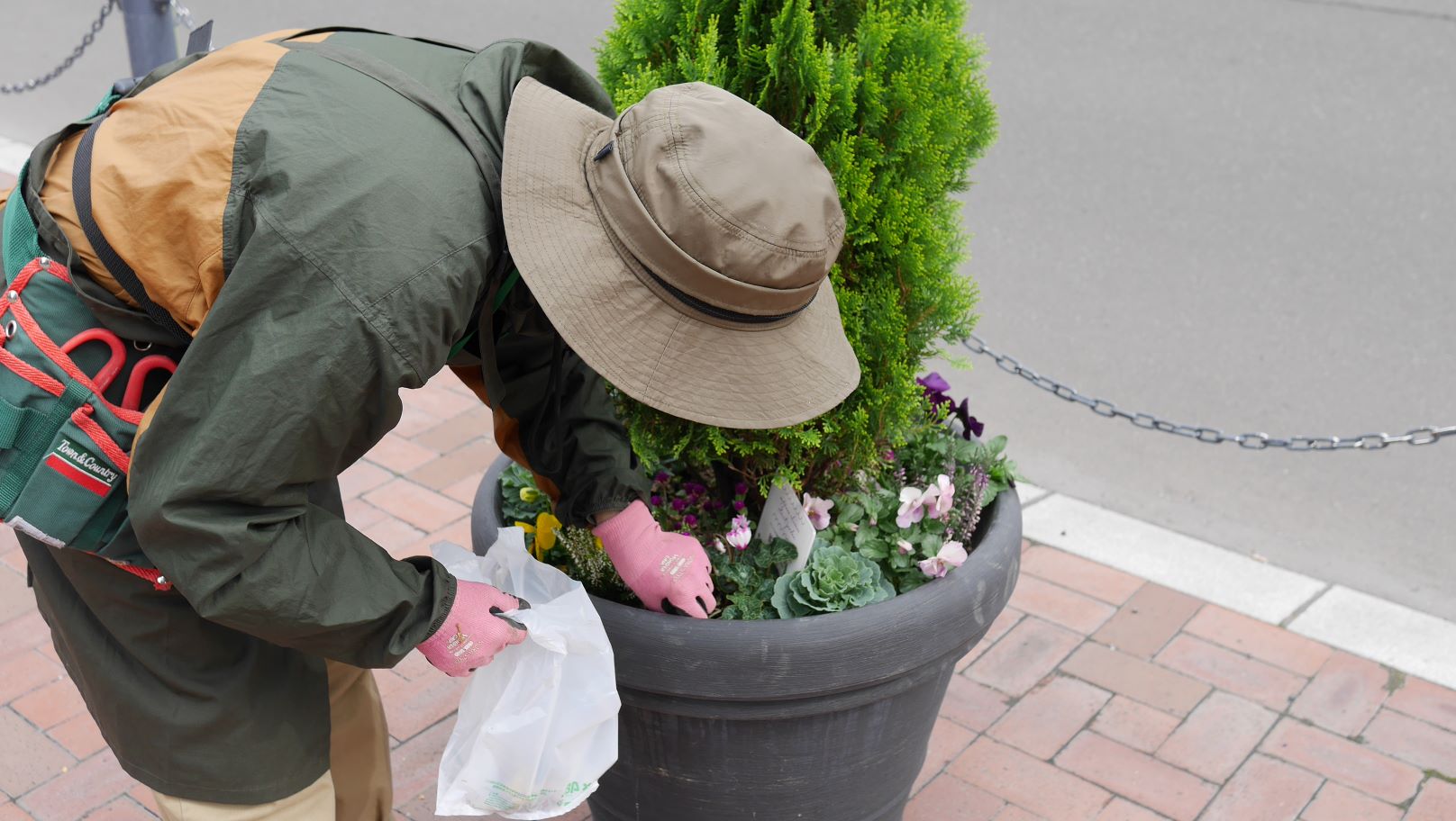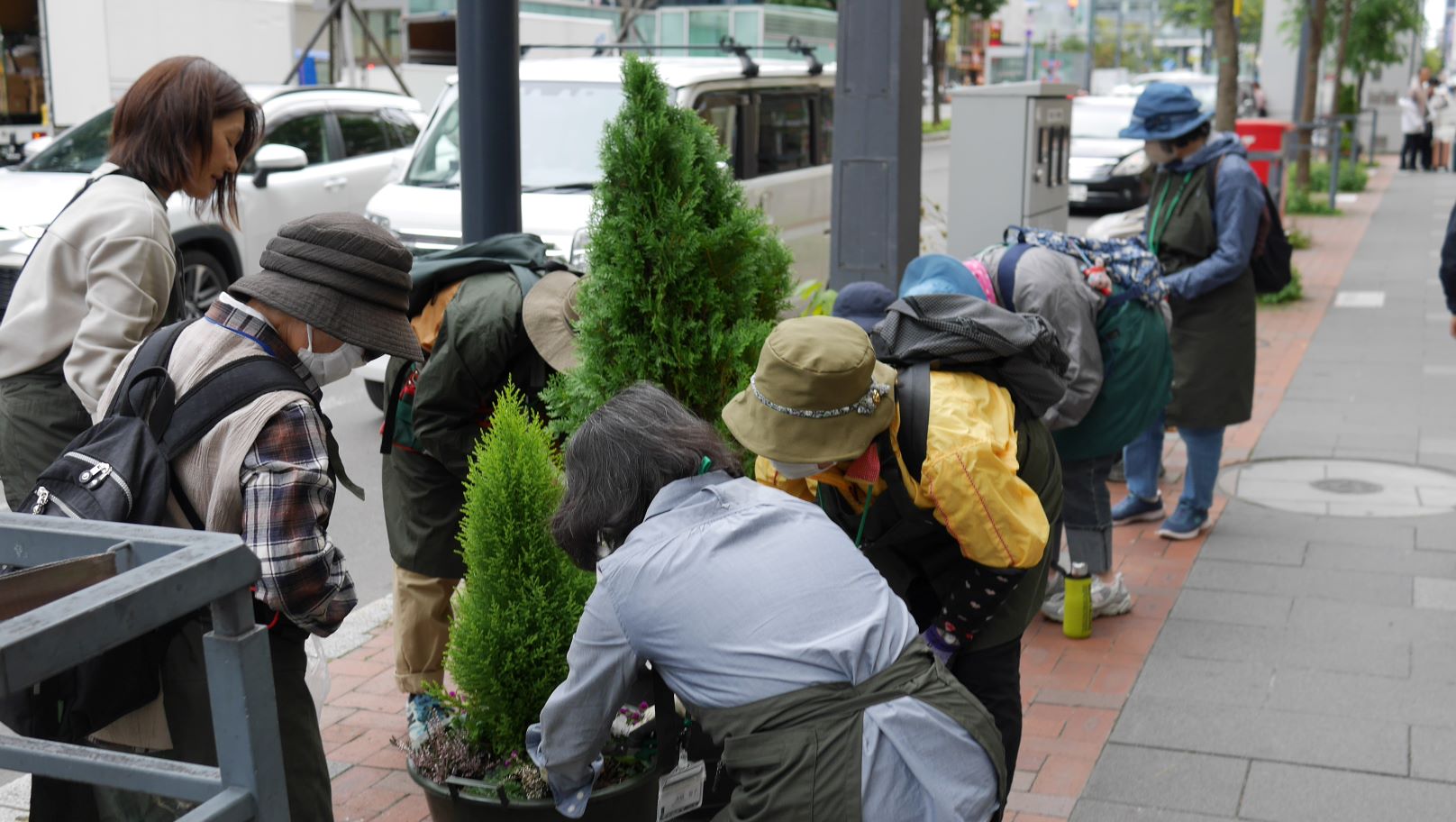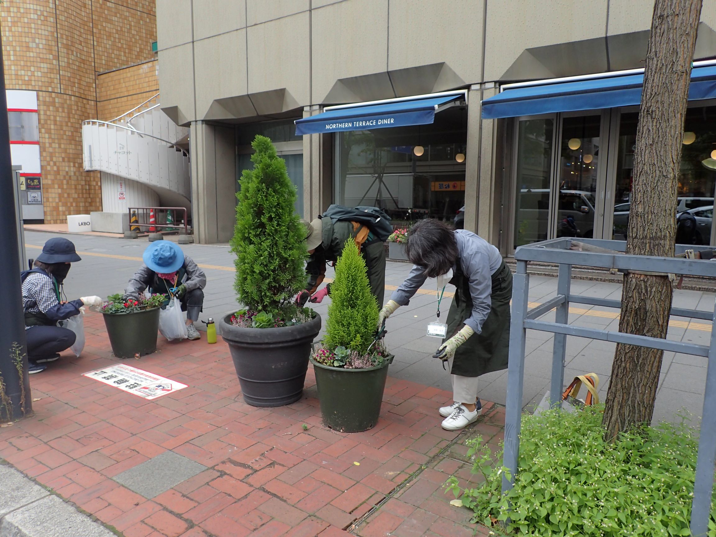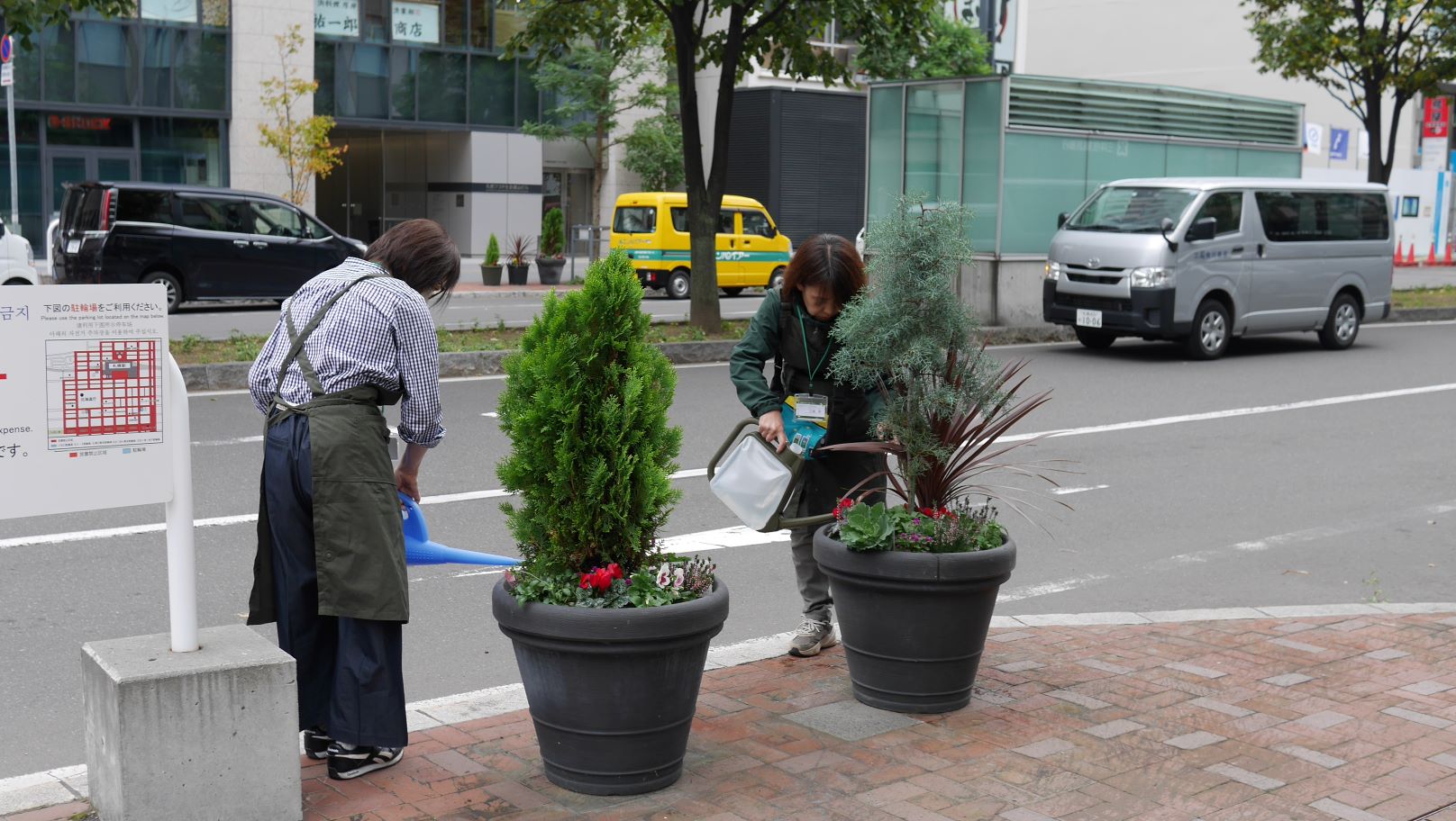 札幌駅前通に設置されているプランターのメンテナンスを行う様子
