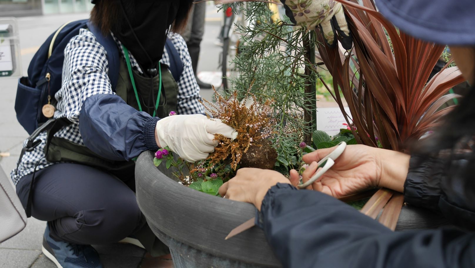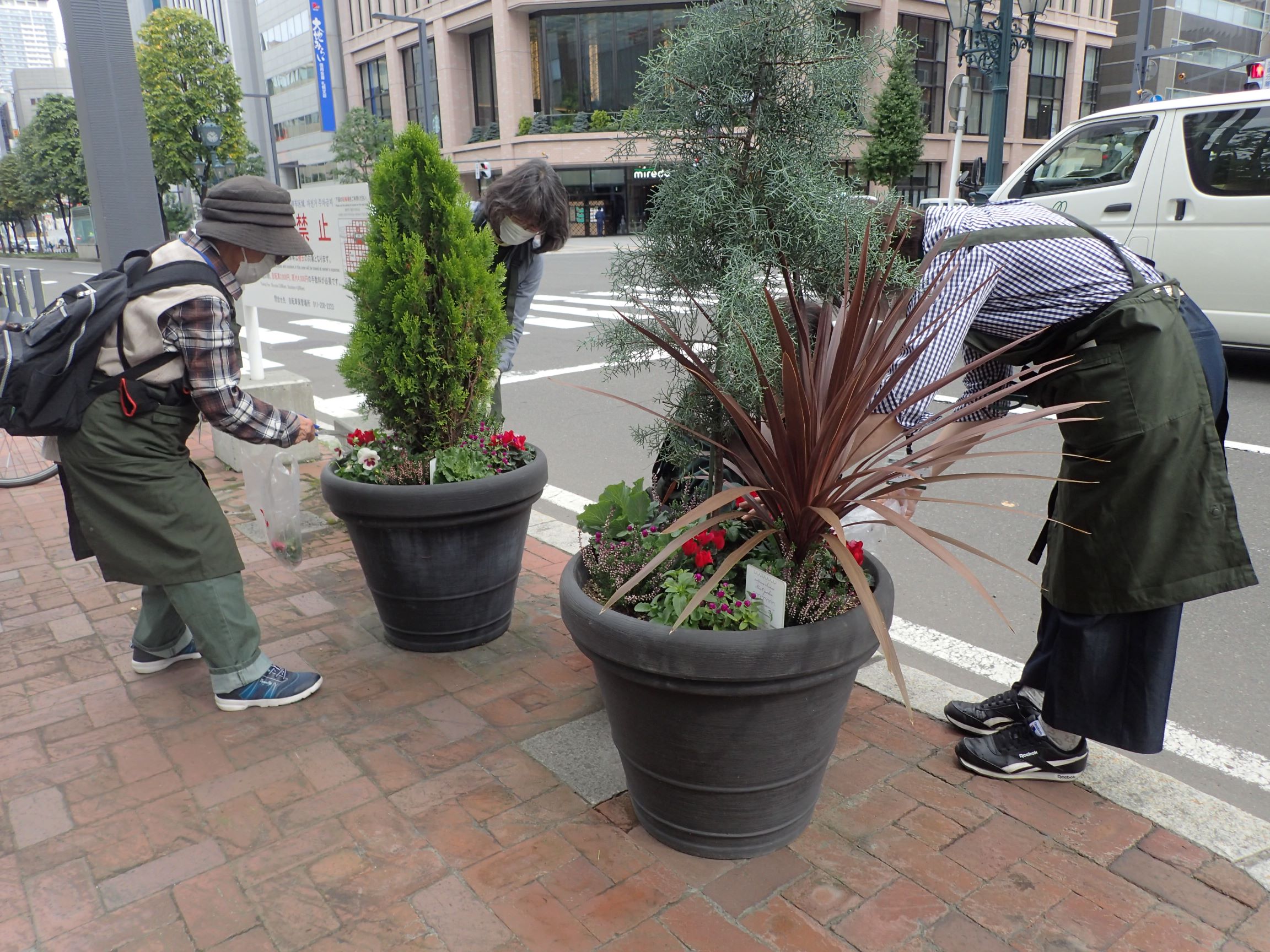 10月3日(木曜日)、さっぽろタウンガーデナーまちづくり体験実習「札幌駅前通ストリートガーデン」の第6回目の実習で、フラワープランターのメンテナンスを行いました。