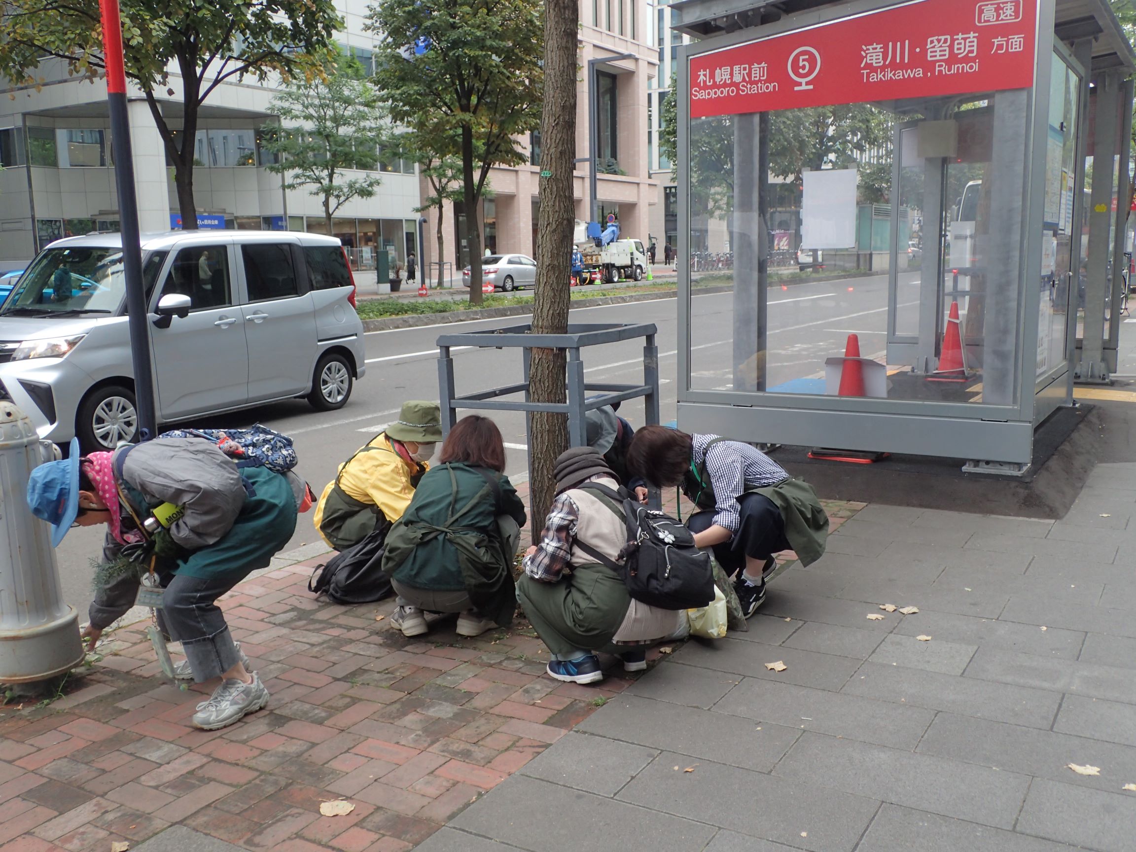 札幌駅前通に設置しているプランターの様子を見ていると、ところどころ苗が浮き上がり、ポコッと抜けてしまう苗もあり、「カラスが植えてすぐ遊んだのかな?」「うちも何回植えなおしても抜かれちゃって困ったの。」といったお話が聞こえてきました。