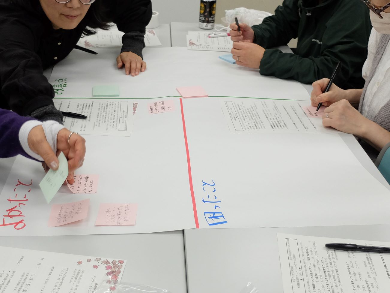 スライドショーを見た後、2グループに分かれて「良かったこと」「困ったこと」「改善点」を話し合いました。