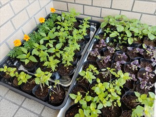 南区のFさんは、月のリズムに合わせて2月24日の新月に種まきをしたのだとか。ハーブ中心で、きれいな花が咲くエキナセアや大型で印象的なアーティーチョーク、食べておいしいホオズキなど種類豊富。5月には右側の写真のように育ちます。いろいろな野菜とハーブを混ぜて植える”ポタジェ”を作っているのだそうです。