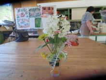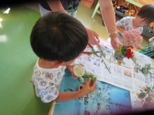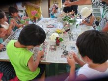 イベントでは、花壇に咲いているお花を使ってフラワーアレンジメントをしました。
