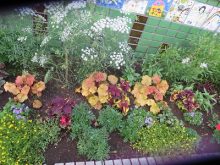 気温が上がり、花壇の花数も増えて華やかになってきました。また、カラーリーフ類も成長して色鮮やかになってきました。