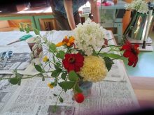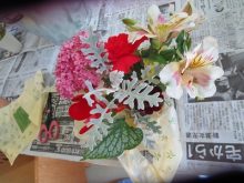 色とりどりのお花で、きれいなフラワーアレンジメントが出来ました。作品の一部です。