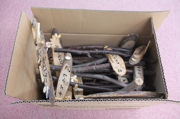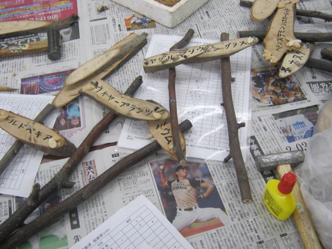メンテナンスの後は、花壇に植わっている宿根草の名板を作りました。