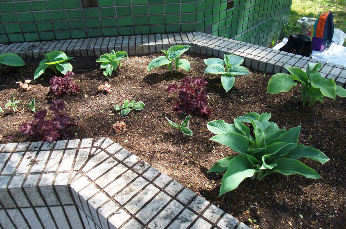 前回土づくりの際に移植したギボウシやヒューケラ達。