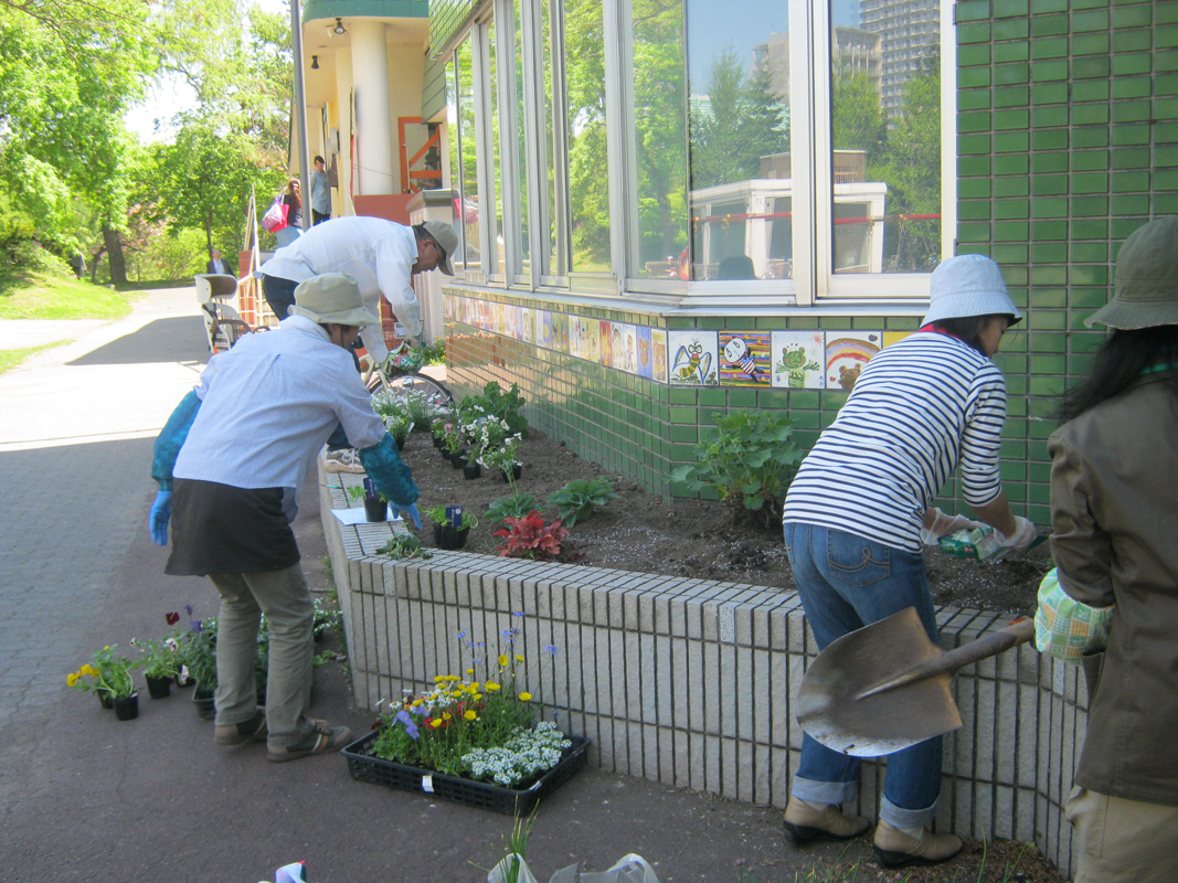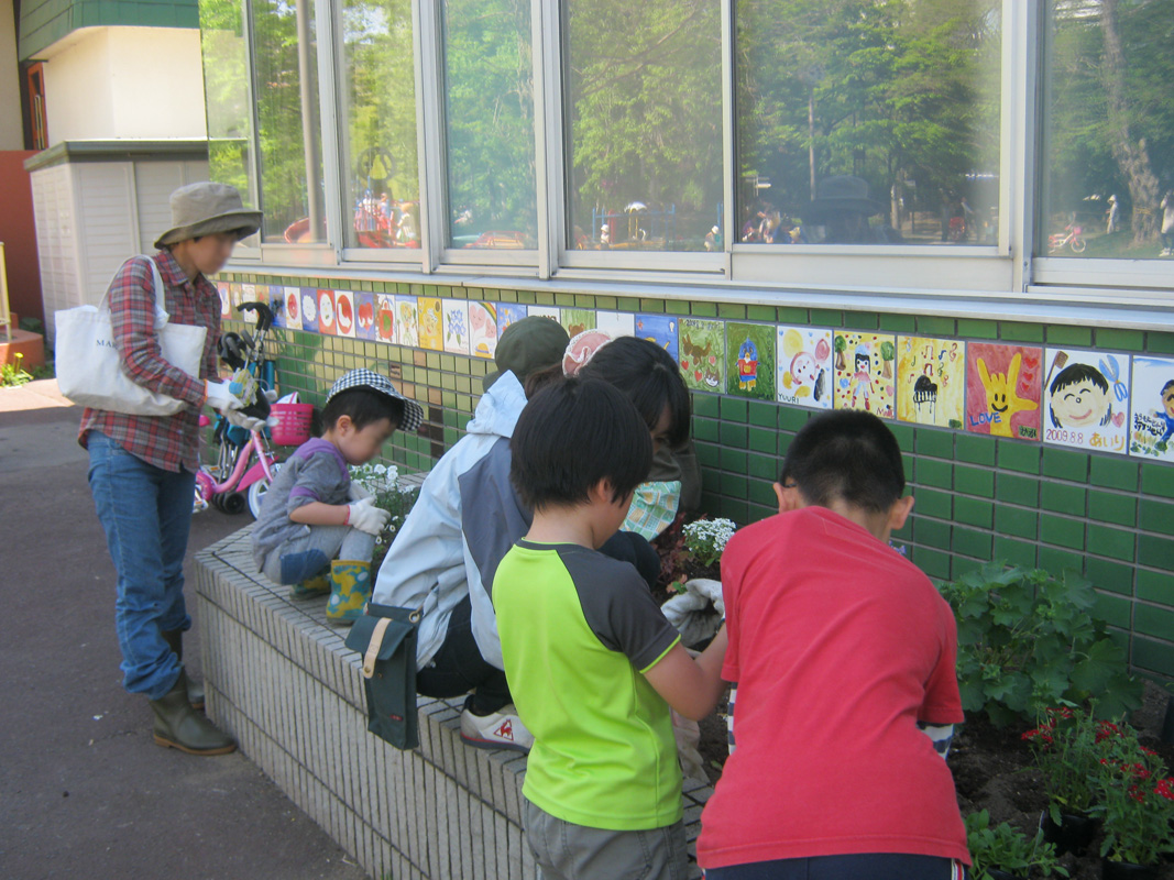 6月1日(土)に、中島児童会館前花壇の花苗の植え込みを行いました!