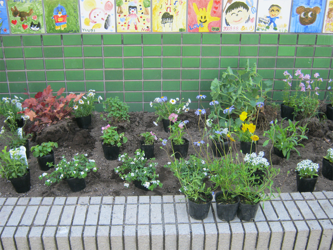 自分達で植え込んだお花達、これからも成長を見守ってね♪