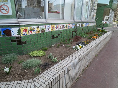 それぞれの班の花壇のイメージは、入口近くの1班は「明るく、元気で、児童会館らしく(童心に返って)」、1班に続く場所の2班は「動から静へ(大人への道のり)」、少し離れた所の3班は「立体的に見せる(魅せる)花壇」です。