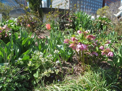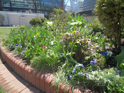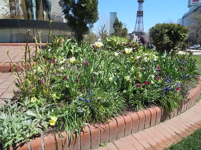 現在つぼみのチューリップも、これから続々と咲いてきて花壇はさらににぎやかになりそう