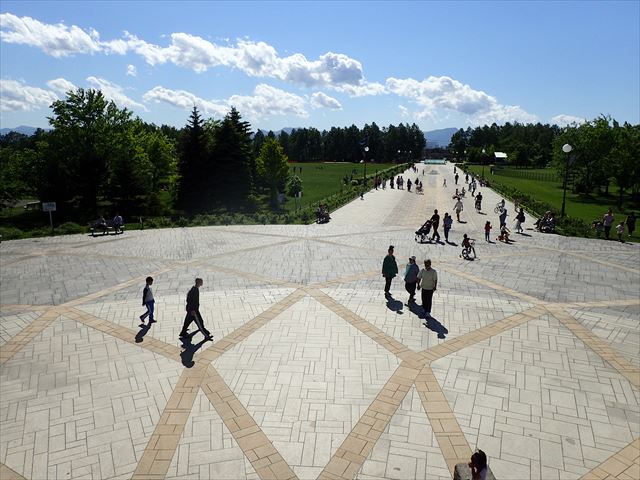 たくさんの人で公園が賑わっていました(↓壁泉の上からの眺めた、ライラックの森の反対側)。