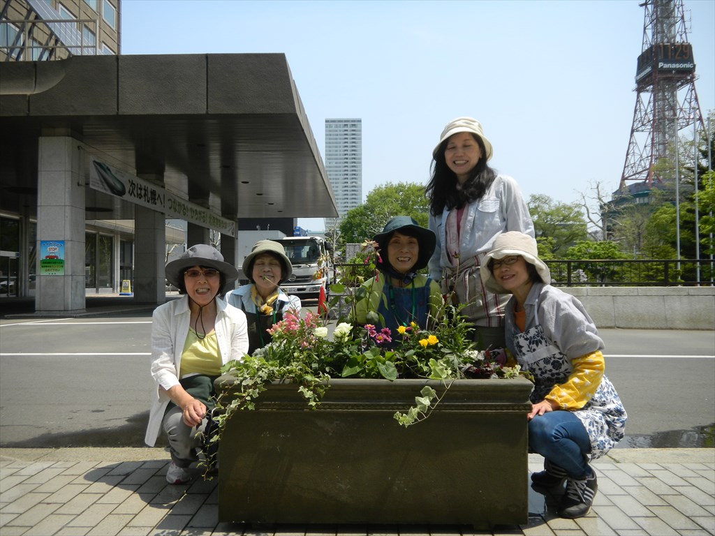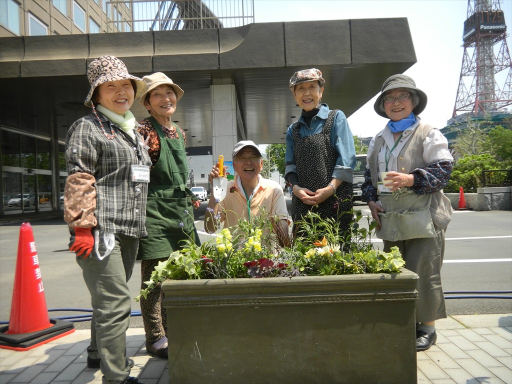 5月21日、最高気温が29度という夏日に、市役所前おもてなし花壇の植え込み作業を行いました。
