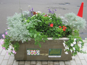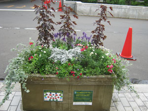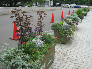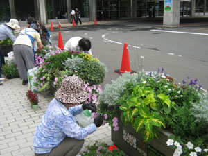 8月24日、市役所前コンテナづくりに参加している「さっぽろタウンガーデナー」
