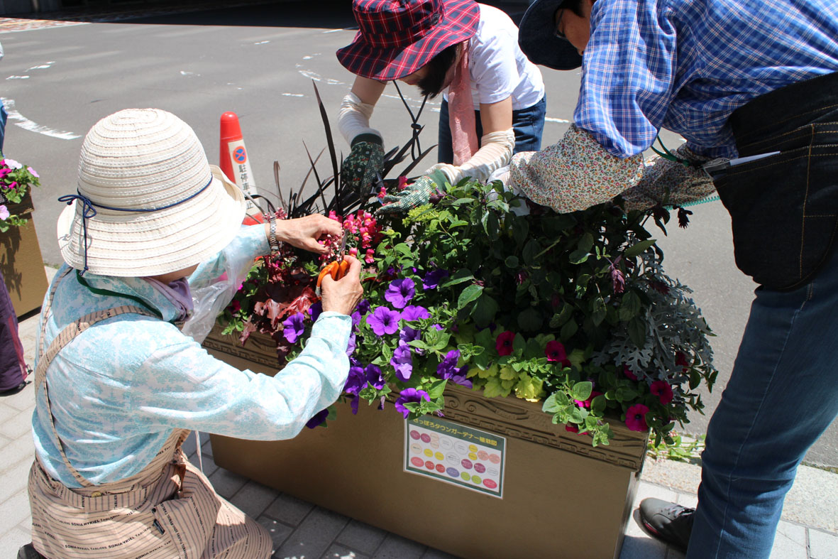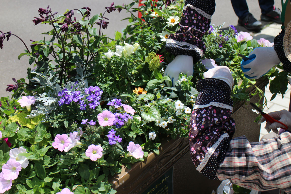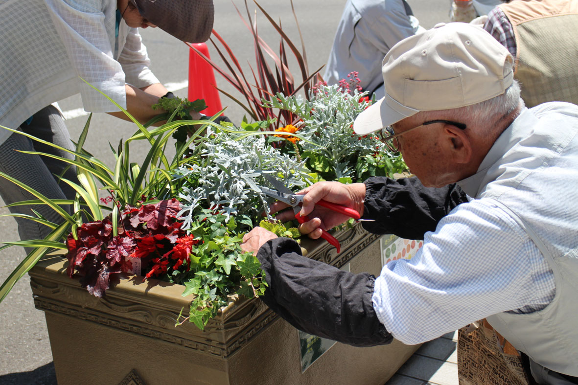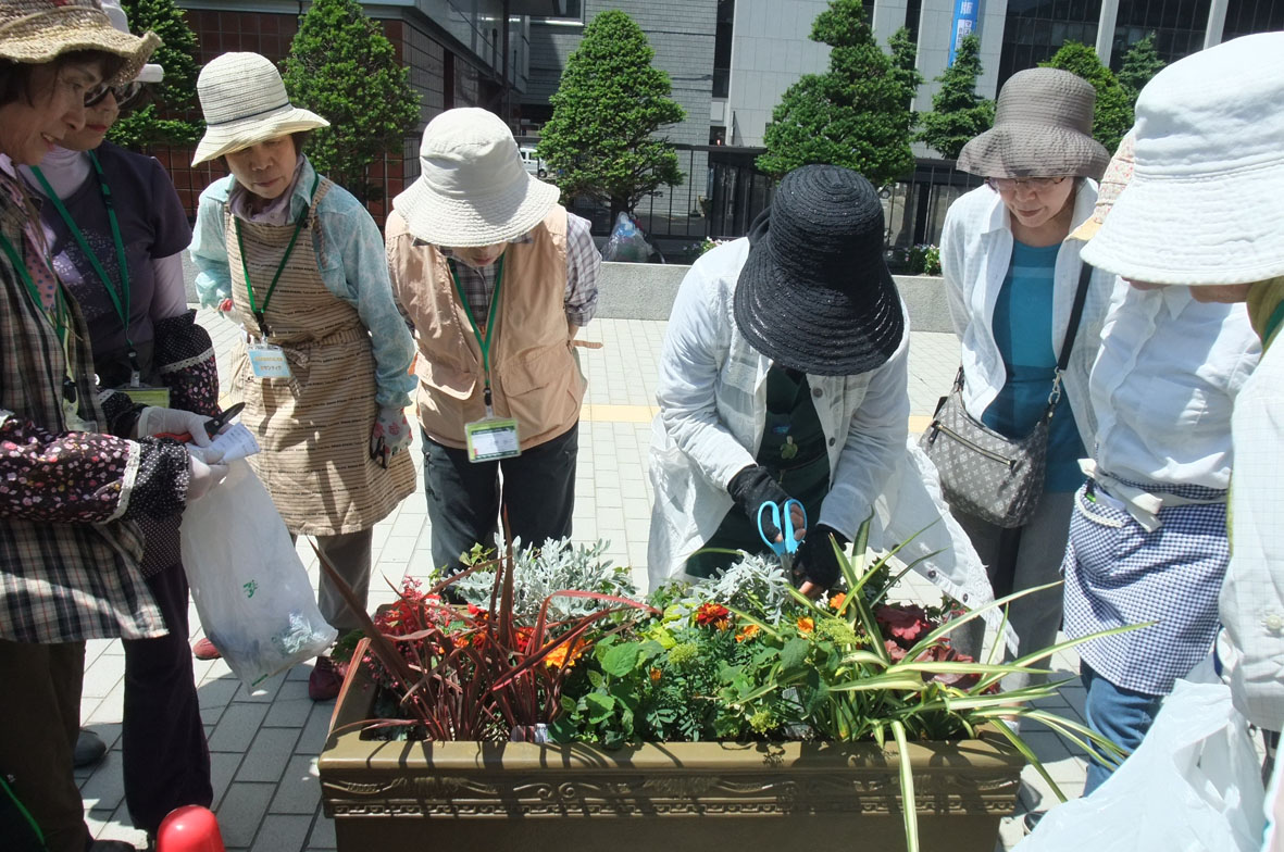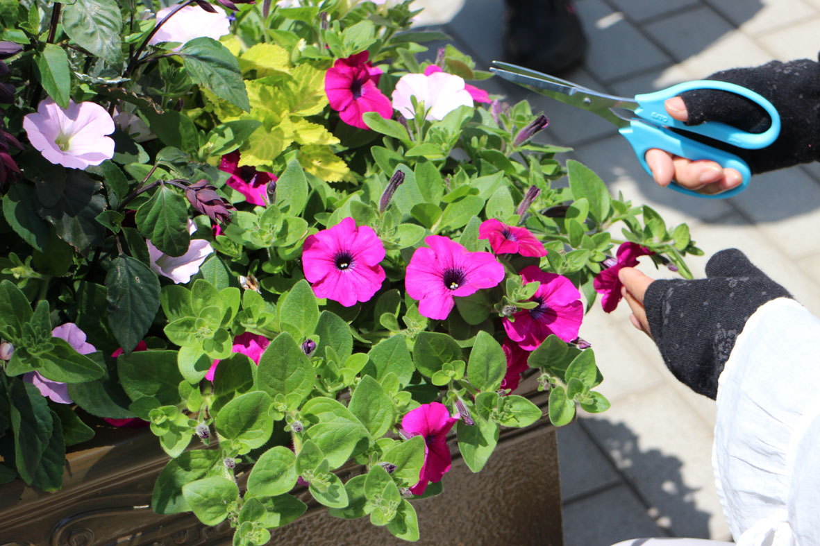 コンテナの植物のメンテナンス作業をします。