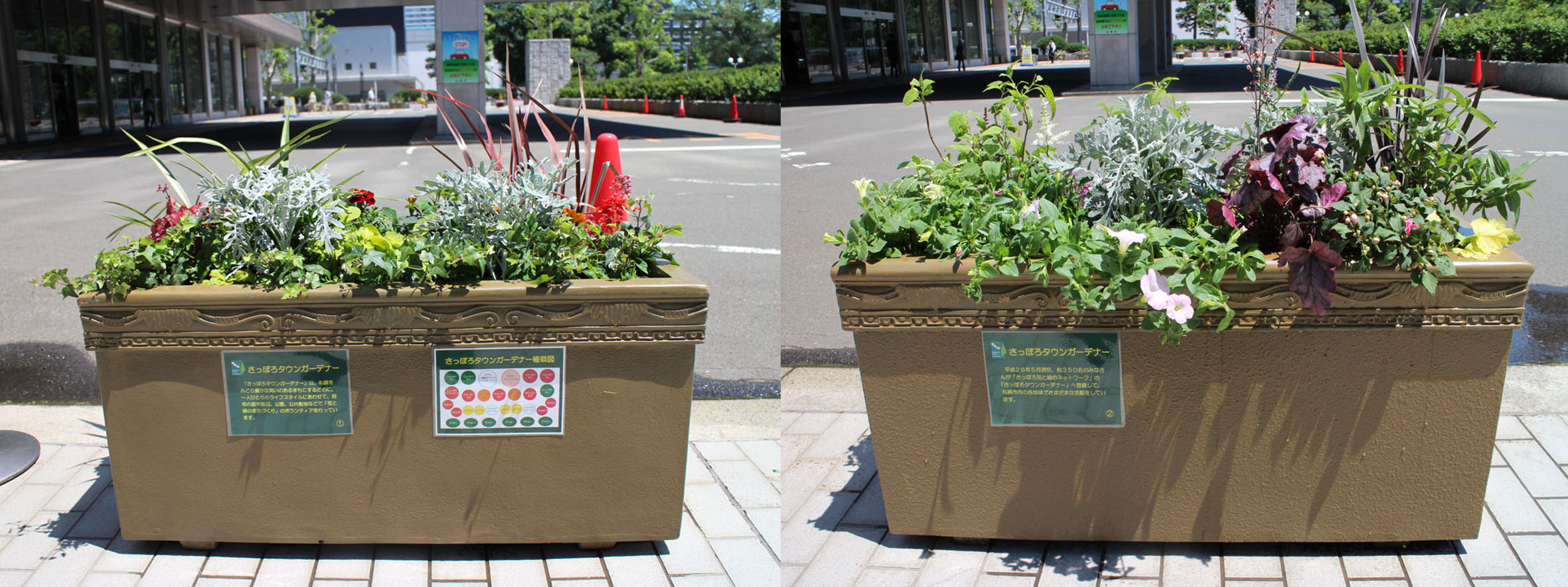 苗植えから約1か月が経ち、コンテナの植物もだいぶ様変わりしました。