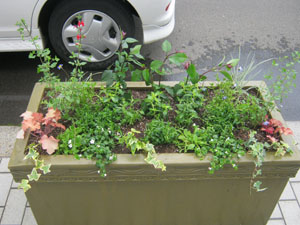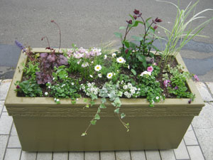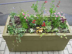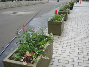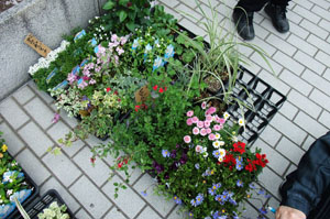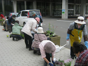 5月25日、少し心配でしたが雨が降ることもなく、さっぽろタウンガーデナー10名が参加し、市役所前コンテナへの花苗の植え込みを行いました。