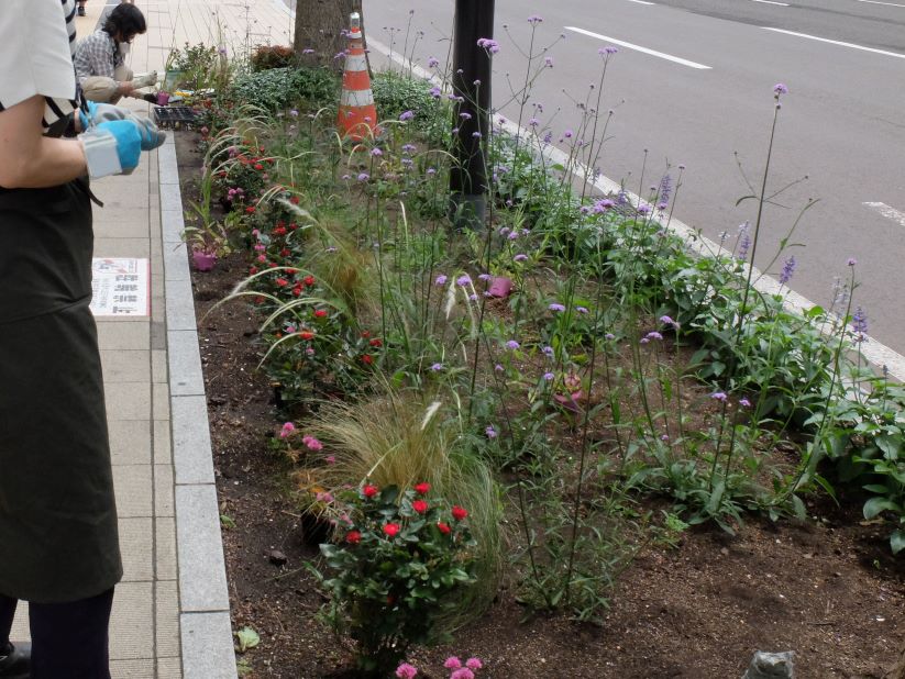 今回の活動では始めに、タウンガーデナーの皆さんと一緒に花壇の補植をおこないました。