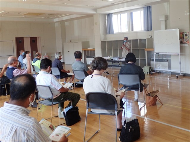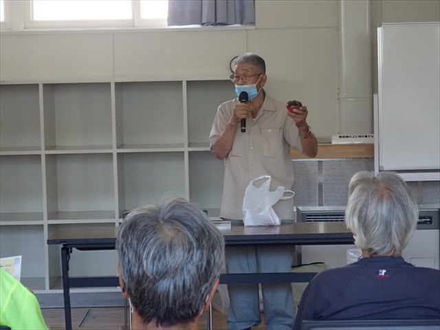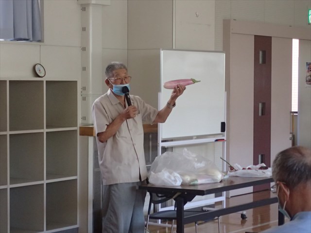 トマトの苗の増やし方、ナスをたくさん収穫するための施肥の仕方は、ホウレンソウに虫がつかないようにするには何ミリのネットでトンネルを作るかなど、9月中旬までに必要になってくる作業についてすぐに役立つポイントがあり、10時から12時までの講習会の間、受講者はメモをとりながら真剣に聞いていました。