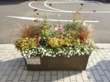 コンテナならではのデザインのこと、公共の場所のコンテナ花壇であること、毎日メンテナンスが出来ないこと。がキーワードでした。