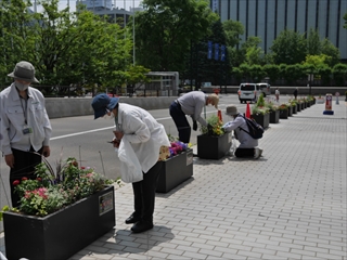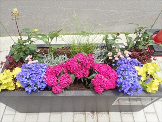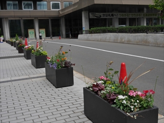 6月24日、札幌市役所本庁舎前コンテナガーデンづくりの第2回めの活動を行いました。6月6日に植えた苗は花が増えて少しボリュームアップしました。