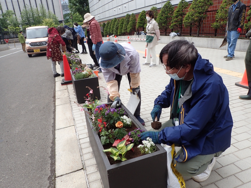 札幌市役所本庁舎前コンテナガーデンづくり 第2回目の講習を行いました