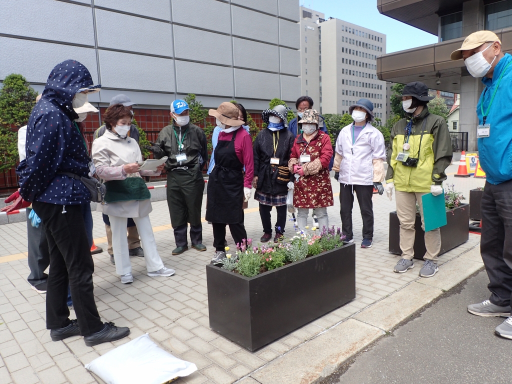 6月4日(土曜日)、まちづくり体験実習 札幌市役所本庁舎前コンテナガーデンづくりの第2回目の活動として、グリーンアドバイザー 園芸ソムリエの谷口 澄子氏を講師に迎えて「苗植え講習会」を実施しました。