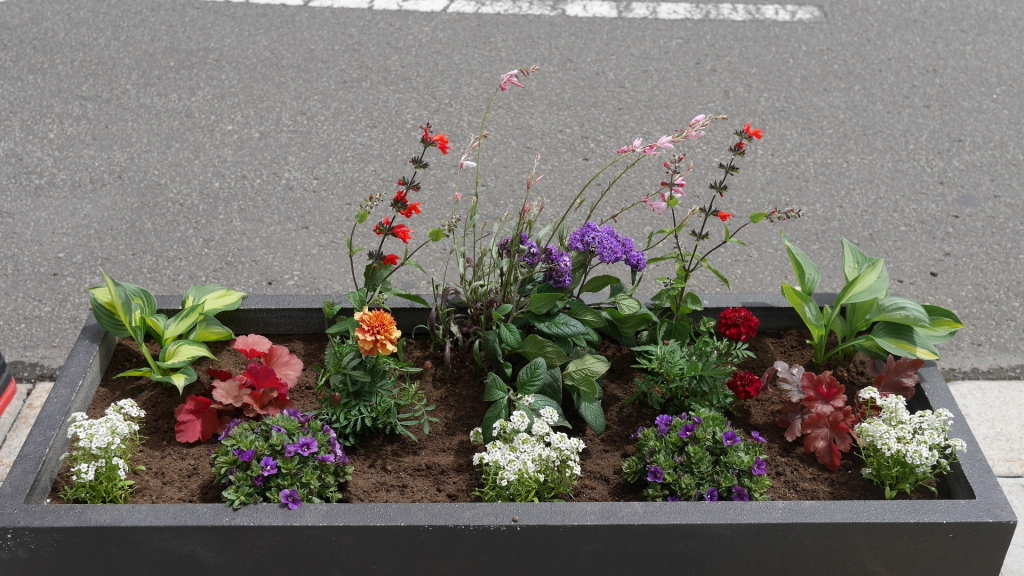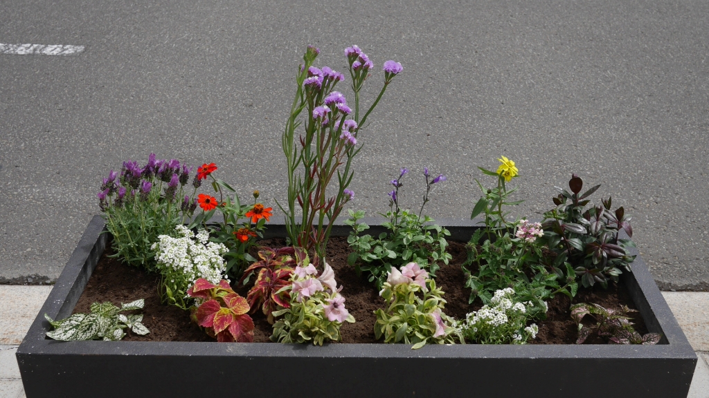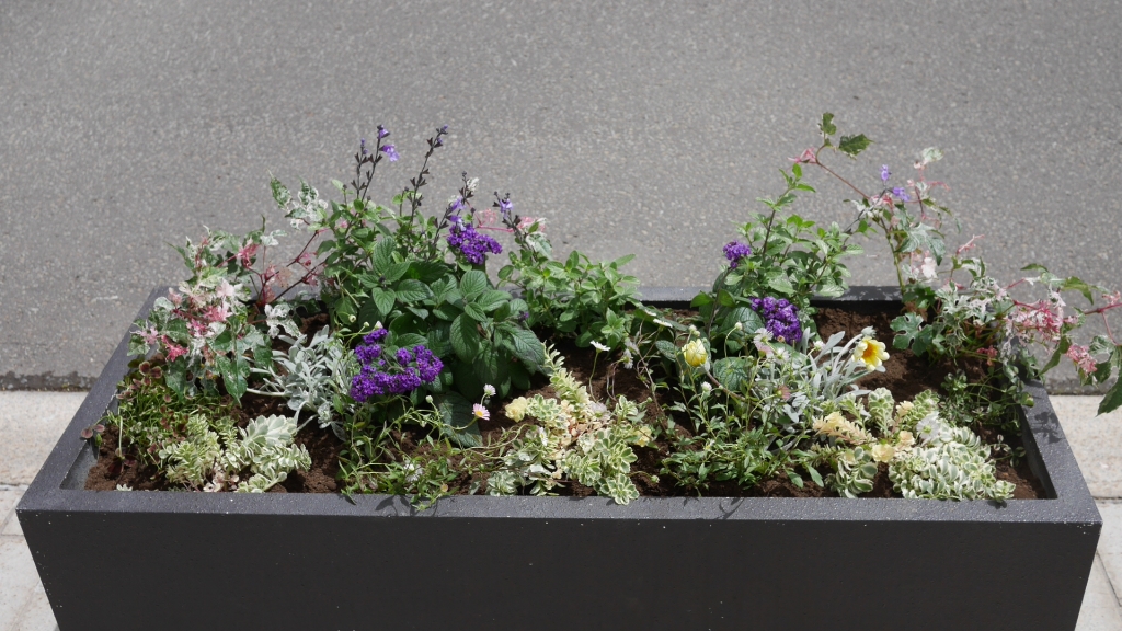 植栽したコンテナ花壇
