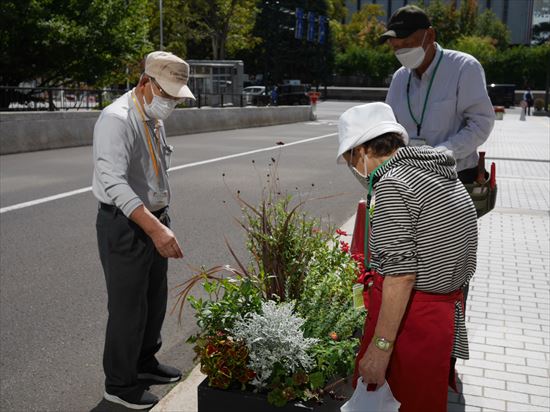 9月15日、札幌市役所本庁舎前コンテナガーデンづくりの第7回目の活動でメンテナンスを行いました。
