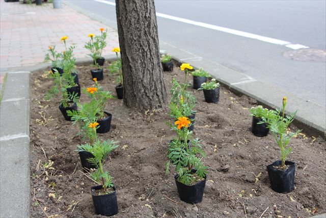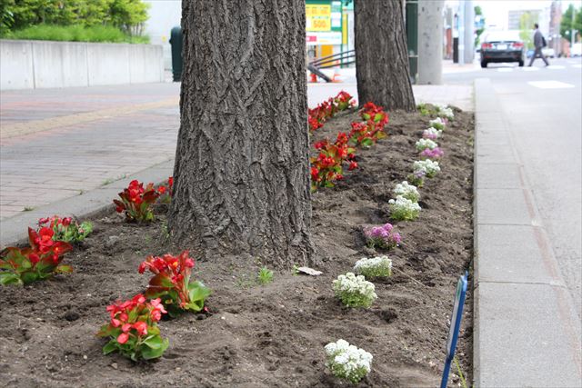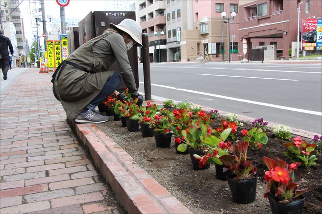 5月27日、東西では創成川通りから東7丁目、南北では大通からJR線路までが区域の東北連合町内会が北3条通りの植えますに花植えを行いました。
