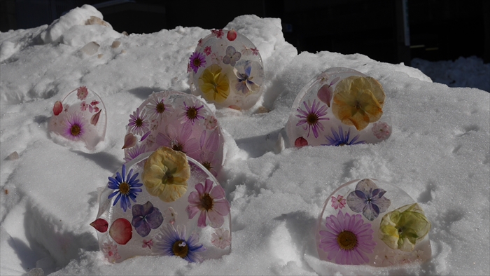 氷の花飾りを作りました