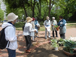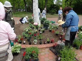 永山記念公園の活動は昨シーズンからのメンバーに新しくタウンガーデナーが加わって6月2日、第1回目の活動で花植えを行いました。