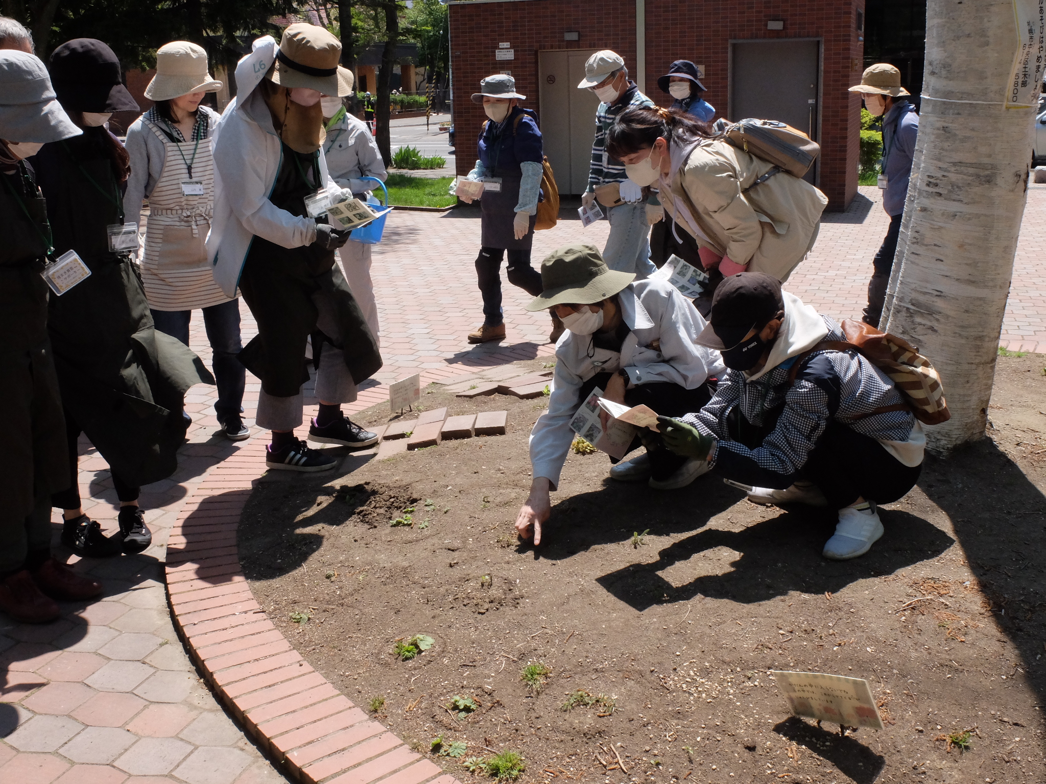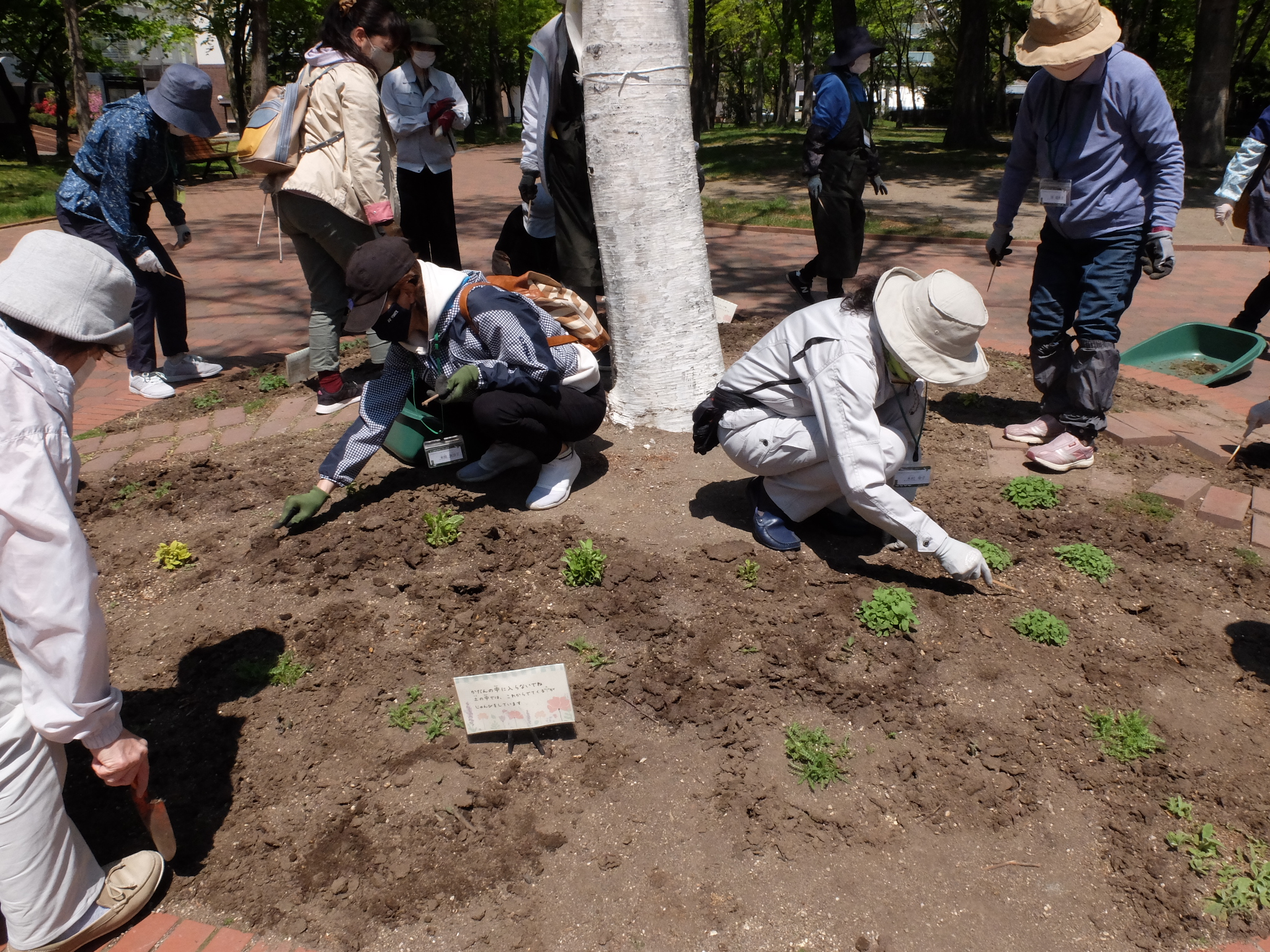 さっぽろ花と緑のネットワーク事業のまちづくり体験実習の「永山記念公園花壇づくり」の活動がはじまりました。今年度は昨シーズンからの継続メンバー5名と新たに13名の方が加わり、合計18名で活動することになりました。