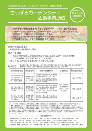「さっぽろガーデンシティ活動助成金」のご案内です。花と緑の活動に役立ててみませんか?