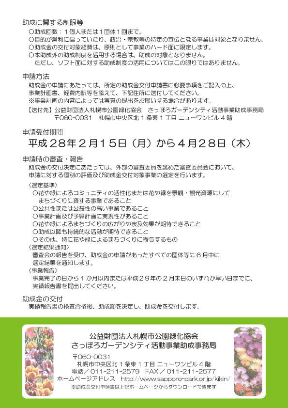 札幌市公園緑化協会 さっぽろガーデンシティ活動事業助成事務局